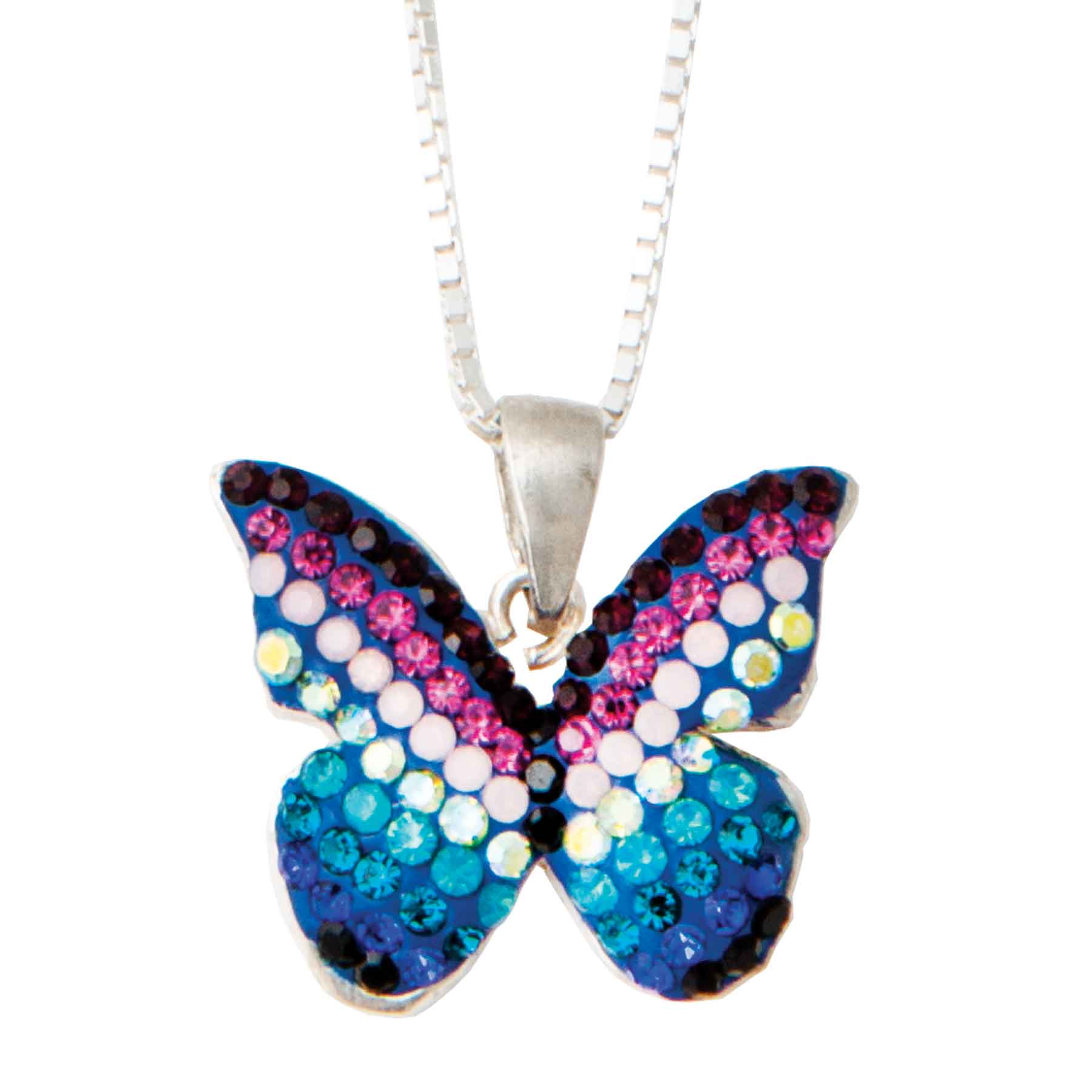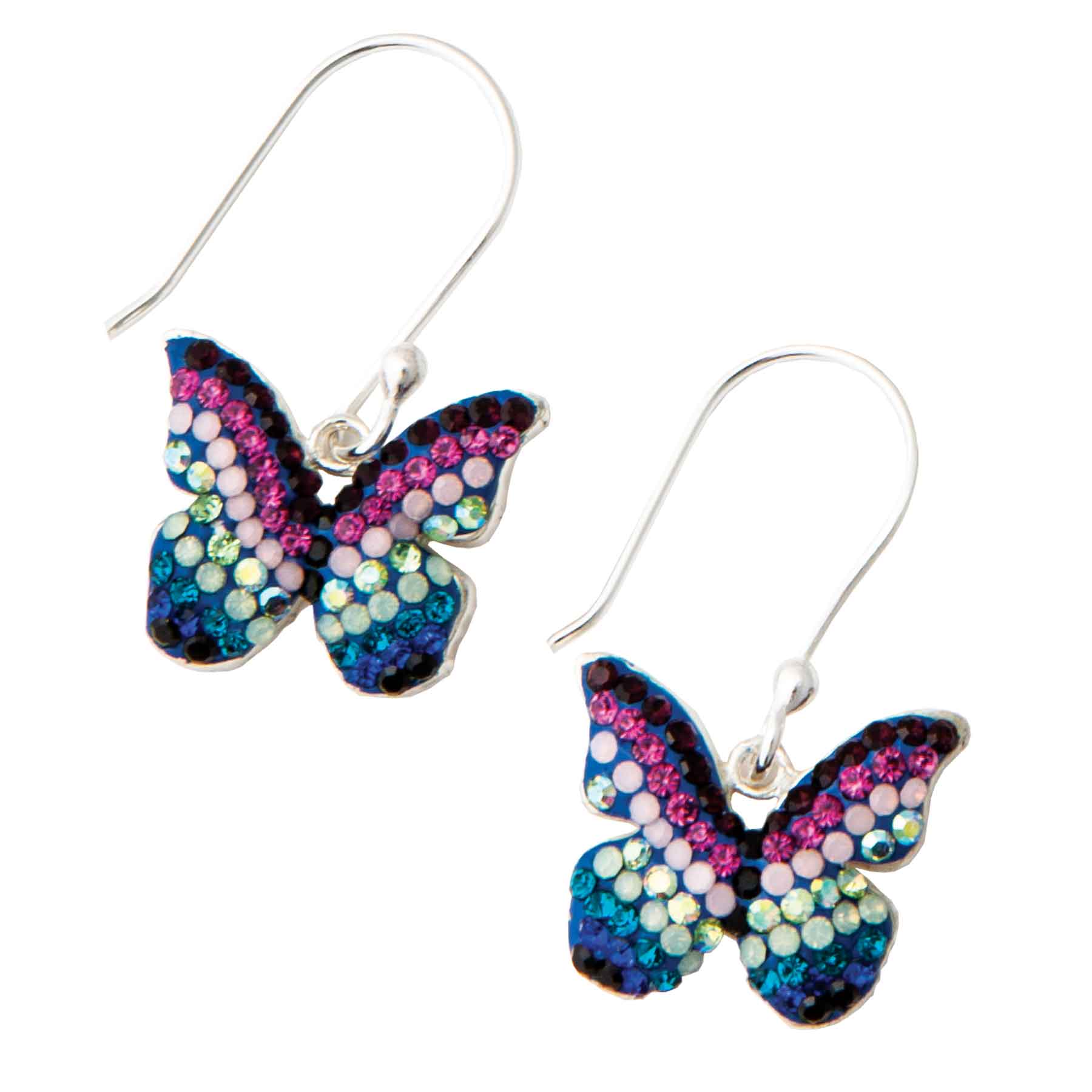 Color takes flight in these vibrant, sparkling butterfly-shaped drop earrings and matching pendant.