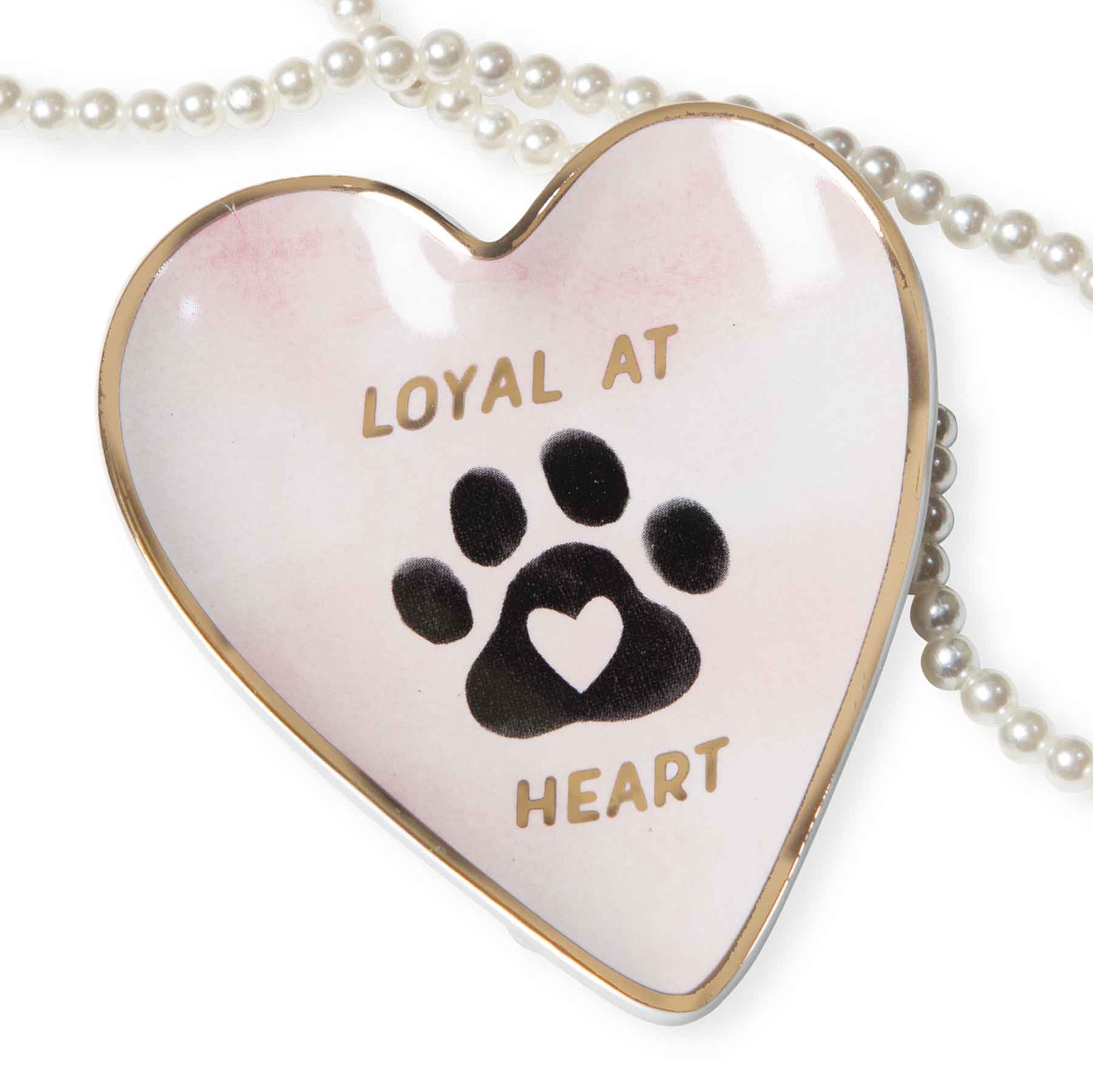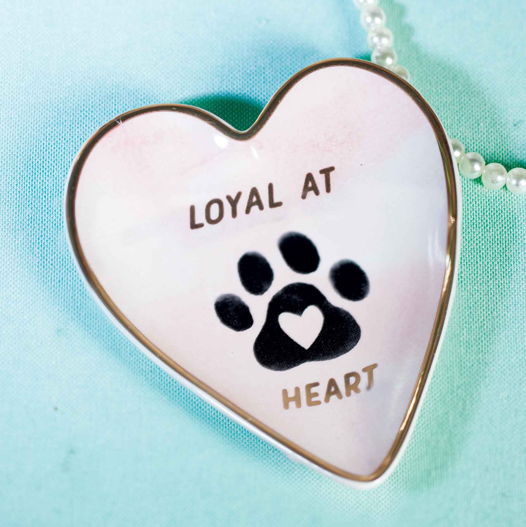 Cherish the loyal love of a pet with this heart-shaped trinket dish with gold accents.