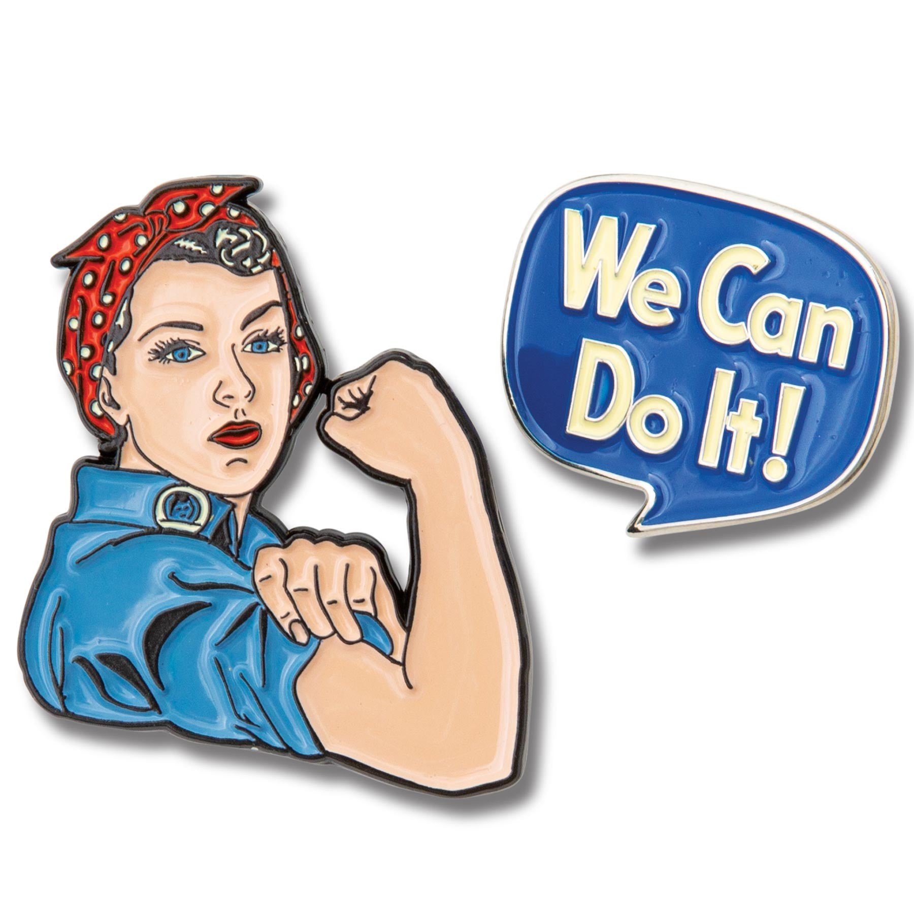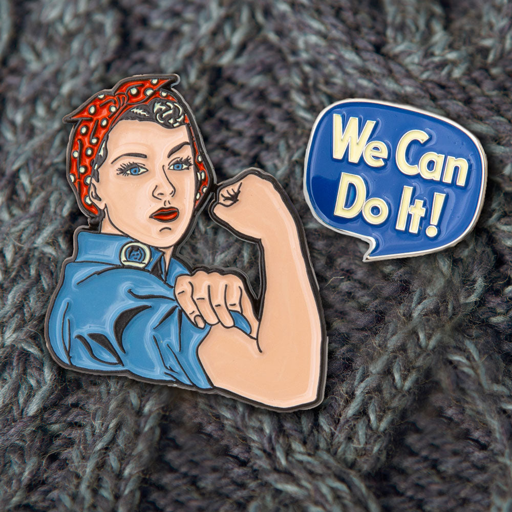 Feminism looks great pinned to your backpack, jacket or bag with this Rosie the Riveter Pin Set. It’s a colorful die-cast enamel pin duo featuring the cultural icon and the phrase, “We can do it!”
