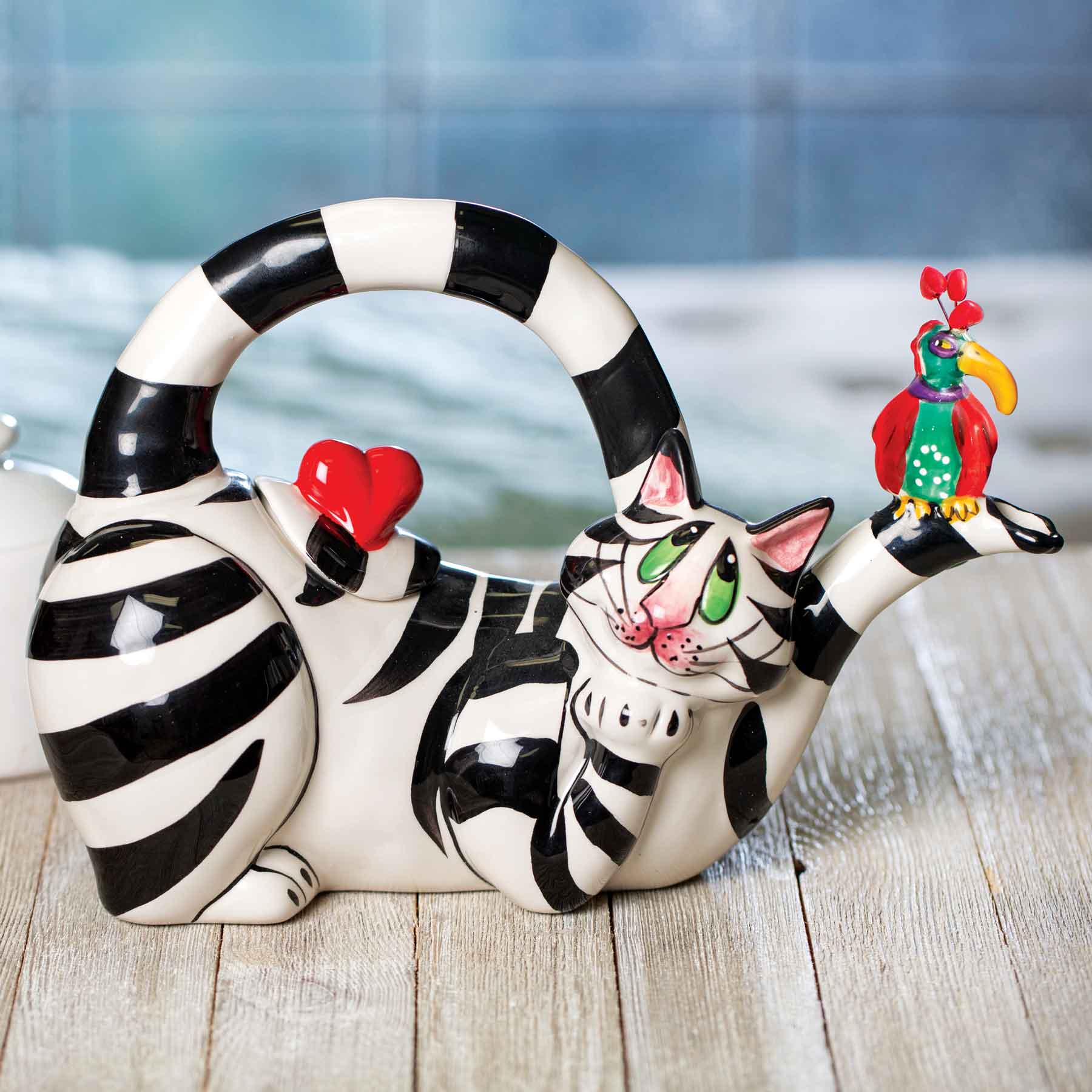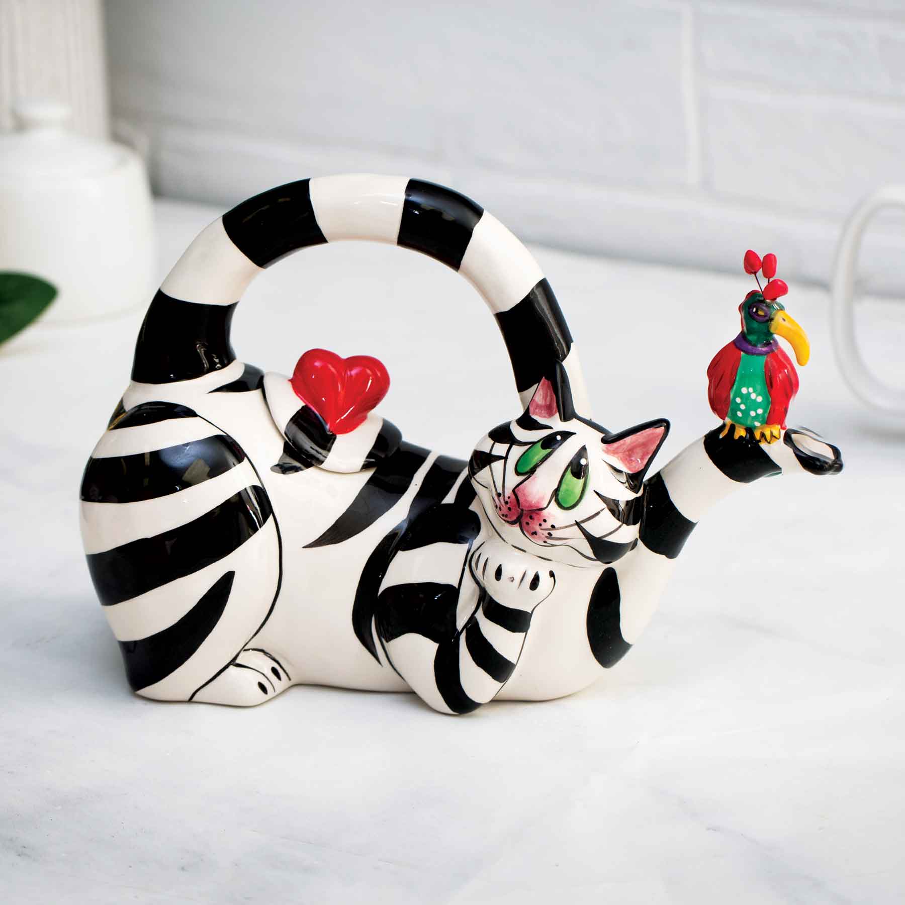 Teatime just got a lot more purr-fect with this whimsical striped cat teapot.